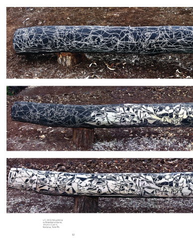 o.T., 2002, Holzschnitte auf Eukalyptusstamm, Ø 0,40 x 4,50 m, Mariposa, Teneriffa 82